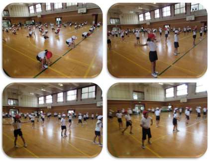 4年生の体育の学習です。運動会のダンスの練習を行っています。