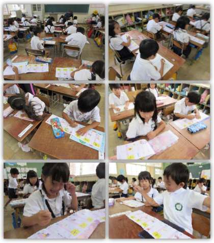 1年生の国語の学習です。新出漢字の学習をしています。今日は『七』という字を学習しました。
