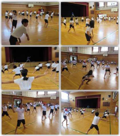 9月8日(金) 5年生の体育の学習です。団体演技「南中ソーラン」の練習に取り組んでいます。