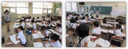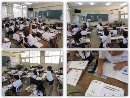 1年生の算数の学習です。身の回りにあるものの長さを、ますを単位として「いくつ分」で表す学習です。