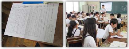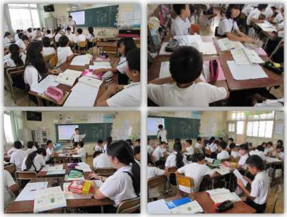 6年生の国語の学習です。教科書P94の資料を用いて、環境問題について呼びかける文章を考え、発表しました。「いい考えだな」「自分も同じ考えだな」と思う友達の意見には、拍手が起きます。