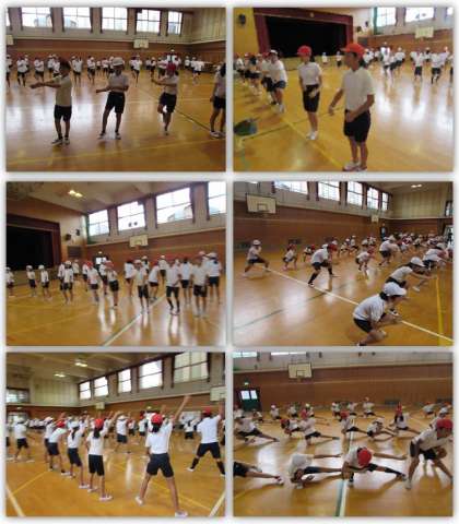6年生の体育の学習です。団体演技の練習に取り組んでいます。