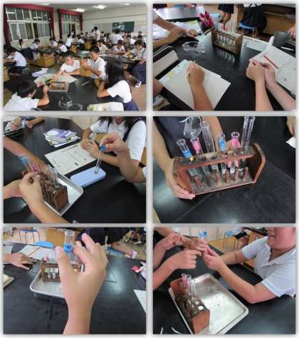 6年生の理科の学習です。鉄やアルミニウムにうすい塩酸を注ぐとどのような反応があるのか、調べました。