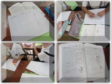 3年生の国語の学習です。ワークシートを使って、2つの「ほけんだより」の違いを見つけていきました。