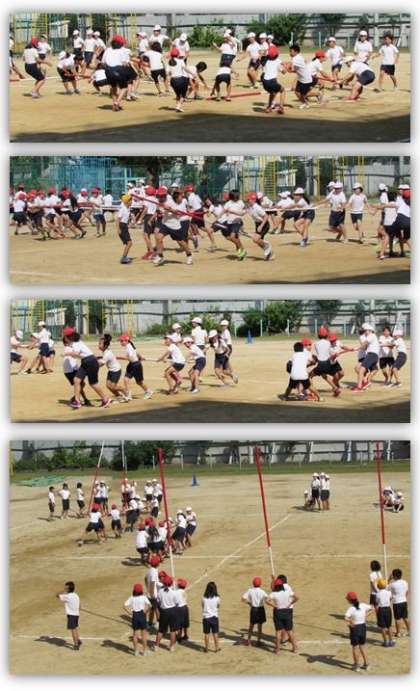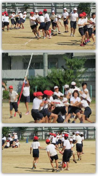5年生の体育の学習です。今日は団体競技(棒引き)の練習に取り組みました。力いっぱいに引き合い、迫力満点の競技になりそうです。