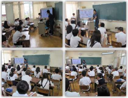 電子黒板の横に立っている子には、画面に映る答えがわからないようにしています。