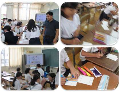 という言い方の学習をしました。画像は、Tシャツに、各自がデザインをしている場面です。