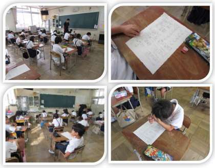 9月21日(木) 2年生の算数の学習です。「たし算のひっ算」のテストに取り組んでいます。