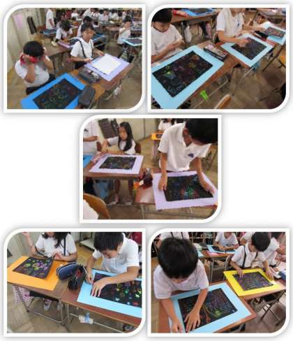 作品を仕上げよう(4年生) 公開日 2017/09/21 更新日 2017/09/21 4年生 9月21日(木) 4年生の図画工作の学習です。スクラッチの作品を台紙の色画用紙に貼り、完成させました。 いいね(0)