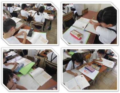 3年生の国語の学習です。教科書111ページを見て、漢字を使って書き表していきました。
