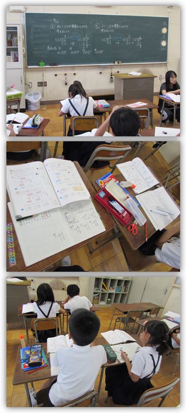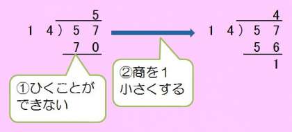 4年生の算数の学習です。今日は2けた÷2けたの筆算で、たてた商が大きかった時、どのように商を修正するのかを学習しました。