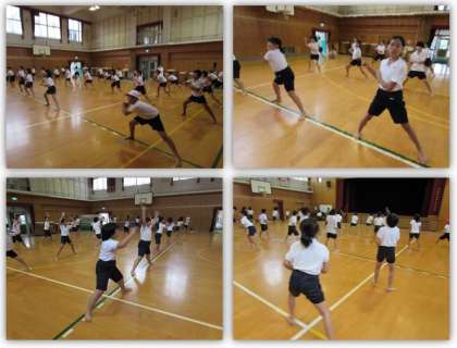9月22日(金) 5年生の体育の学習です。団体演技(南中ソーラン)の練習に取り組んでいます。