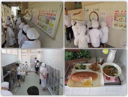 本日の給食の献立をご紹介します。本日の献立は、コッペパン、牛乳、マーマレード、鶏肉のピリ辛揚げ、中華スープ、キャベツとさんどまめの和え物でした。
