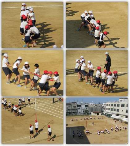 9月25日(月) 5年生の体育科の学習です。団体競技(棒引き)の練習に取り組んでいます。