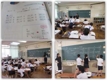 4年生の算数の学習です。3けた÷2けた=1けたの筆算で、仮の商のたて方を理解し、計算しました。