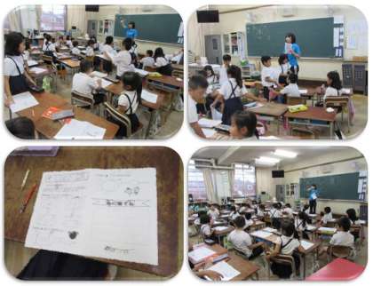 2年生の学活の様子です。学年便りにある図に、運動会での自分の場所を記していきました。画像は、赤、白に分かれて移動し、自分の位置を確認しようとしている場面です。