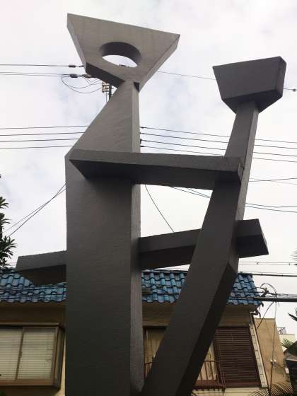 千本小学校の校門をくぐり、校舎に入るその前に、左側に目を移しますと、大きなモニュメントがあることに気づきます。題は「光のある窓」といい、その高さはなんと6m50cmもあります。昭和28年に建立された、ということですから、今年で61歳。校内の、誰よりも「先輩」ということになります。