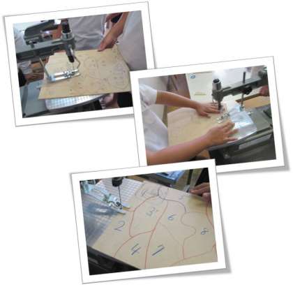 10月5日(木) 5年生の図画工作の学習です。電動糸鋸を使って、板を切っています。