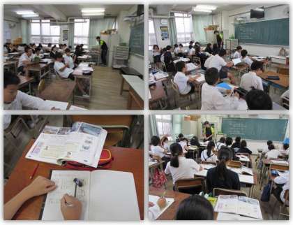 5年生の社会科の学習です。日本の自動車の輸出台数や海外生産台数の変化、世界に広がる日本の自動車工場について調べ、日本の自動車生産と世界の国々との結びつきについて考えました。