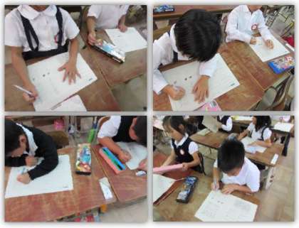 画像は、1年生の帯タイムの様子です。1年生も、プリントを使って学習に取り組んでいます。