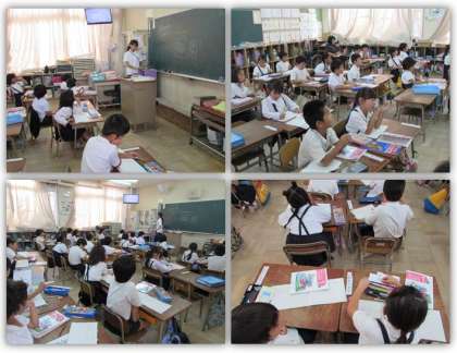 1年生の算数の学習です。「9+3」のように、くり上がりのあるたし算の学習に取り組んでいます。