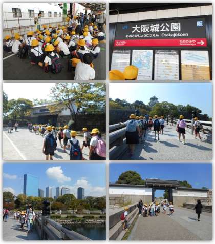 本日、3年生は秋の遠足でした。環状線に乗り、大阪の街の様子を観察しました。大阪城公園の天守閣からも、町の様子をつかむことができました。