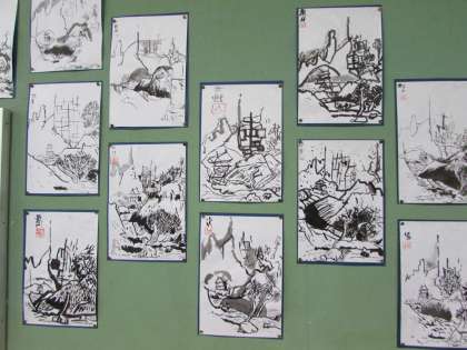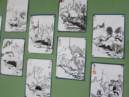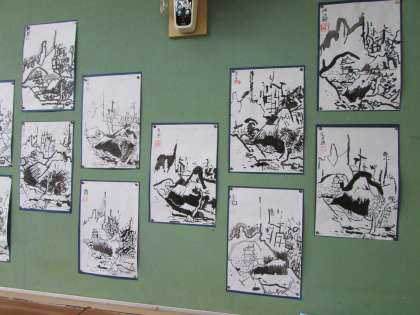 6年生の図画工作の学習です。雪舟の『秋冬山水図』を模写しました。掲示板に、たくさんの雪舟が並びました。