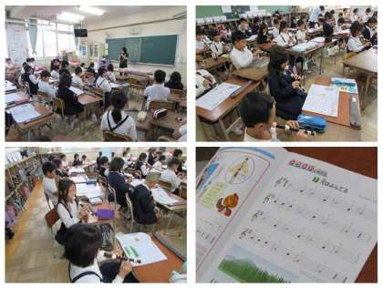 3年生の音楽の学習です。リコーダーの練習に取り組んでいます。画像は『河はよんでいる』の演奏をしている場面です。