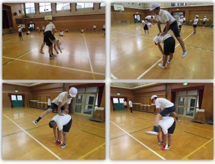 6年生の体育の学習です。様々な力試しの運動に取り組んでいます。