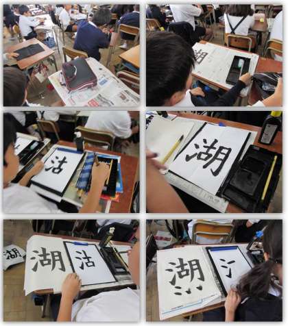 10月20日(金) 6年生の国語の学習です。毛筆で『湖』と書きました。