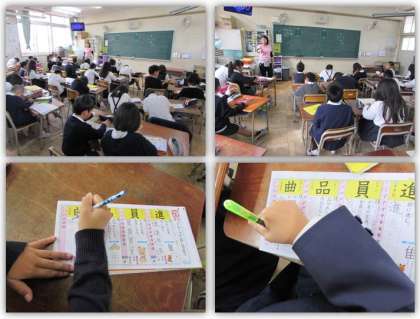 3年生の国語の学習です。新出漢字の学習に取り組んでいます。画像は『曲』という漢字を学習している場面です。