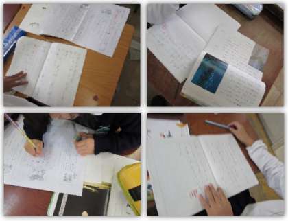 3年生の国語の学習です。絵をもとに想像を広げ、人物の様子が伝わるように物語を書いていきました。