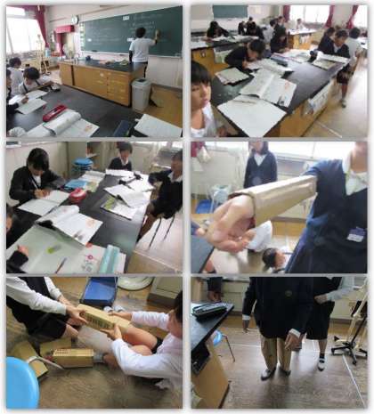 4年生の理科の学習です。人の体には骨、筋肉、関節があり、それらのはたらきによって体を動かすことができることを、模型の動きなどから確かめました。