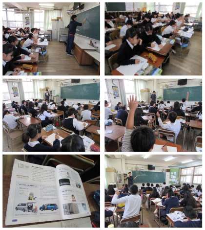 5年生の社会科の学習です。人と環境にやさしい自動車づくりには、どんなくふうや努力が大切なのか考え、発表しました。