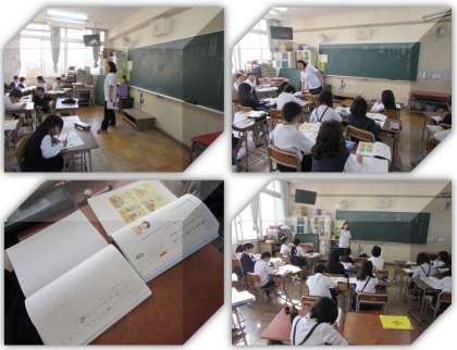 3年生の国語の学習です。絵の中の人物(たぬき・きつね)について想像し、「人物メモ」を書きました。