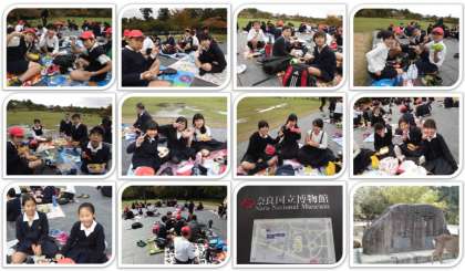 お昼は奈良公園で食べました。友達と一緒に食べたお弁当は、とてもおいしかったです。