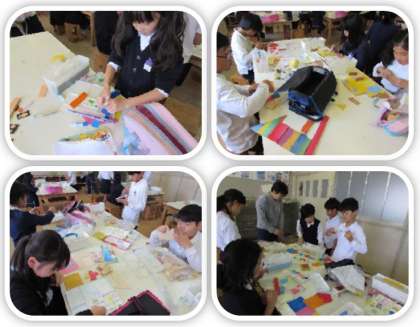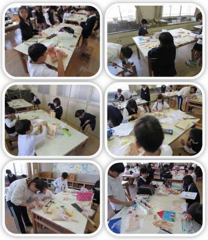 4年生の図画工作の学習です。小物かけ作りでは、板を切り終わった子から、絵の具で彩色をしています。