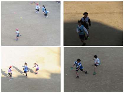 11月2日(木) 5年生の体育の学習です。タグを付け、追い、逃げる練習です。