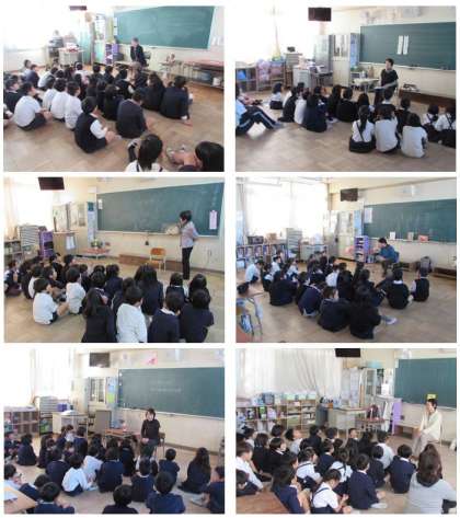 本日、おはなしボランティア「ぐるっぽ」の皆さんにお越しいただき、全学級でお話会を行いました。ぐるっぽの皆さんには、本の読み聞かせをしていただいたり、朗読をしていただいたりしました。45分間、子どもたちはお話の世界に入り、楽しく過ごすことができました。