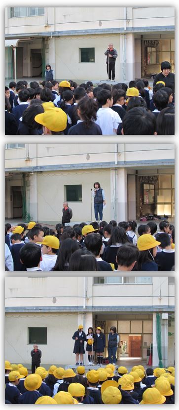 続いて、生活指導担当の先生からの話です。今週のめあて『大きな声で元気よくあいさをしよう』について、話しました。