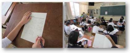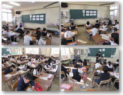 5時間目が始まる前の5分間は『帯タイム』です。各学年では、算数の計算領域の習熟を目指し、プリントなどを使って学習に取り組みます。