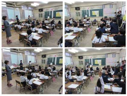 子どもたちは、チロの気持ちや様子が伝わるよう、音読をしました。大勢の先生たちが参観していますが、皆、しっかりと考え、発表することができました。