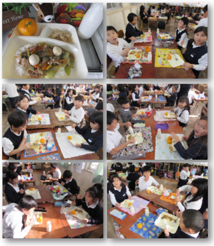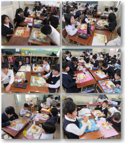 画像は、おいしく給食をいただく3年生の様子です。