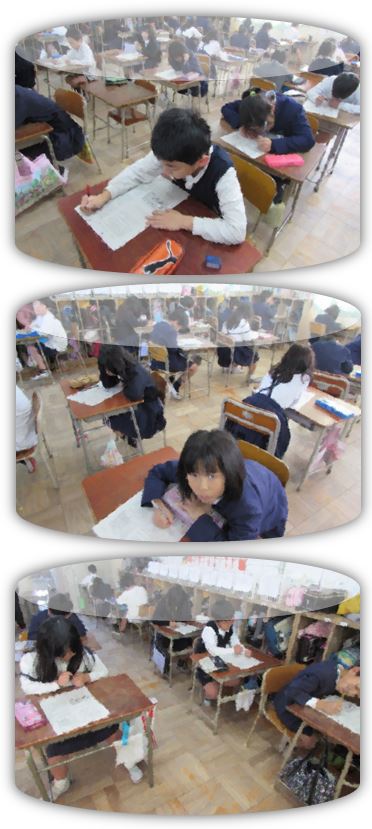 3年生の社会科の学習です。社会科『店ではたらく人々の仕事』のテストに取り組んでいます。