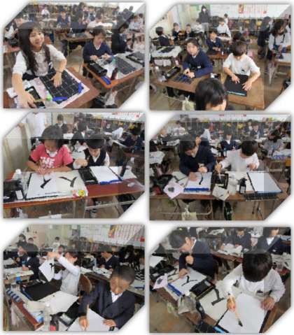 11月10日(金) 3年生の国語の学習です。毛筆書写で『人』と書きました。
