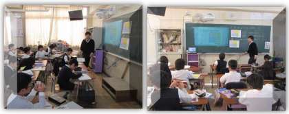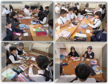 4年生の算数の学習です。陣取りゲームを行い、それぞれの陣地の広さを比べる方法を考えました。