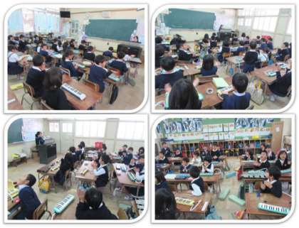 1年生が学習発表会に向けて、練習に取り組んでいます。テンポ良く、しっかりと声を出しています。