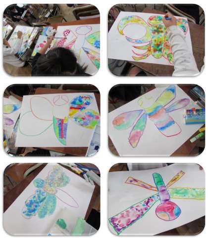 3年生の図画工作の学習です。絵の具のにじみを生かして、世界にただ1匹のちょうちょうを描きました。