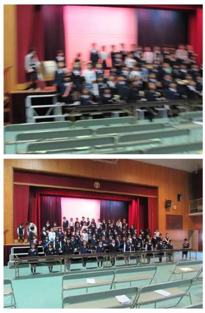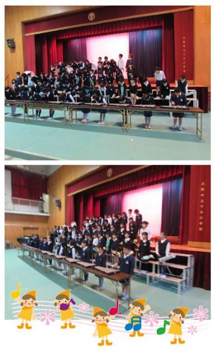2年生の練習の様子です。歌や器楽合奏の練習に取り組んでいます。