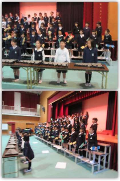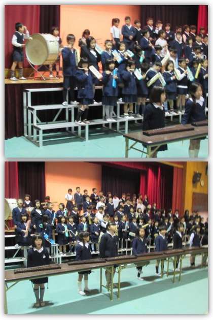 2年生の講堂での練習の様子です。2・4・6年生は、明日がリハーサルですので、最後の練習のつもりで頑張っています。